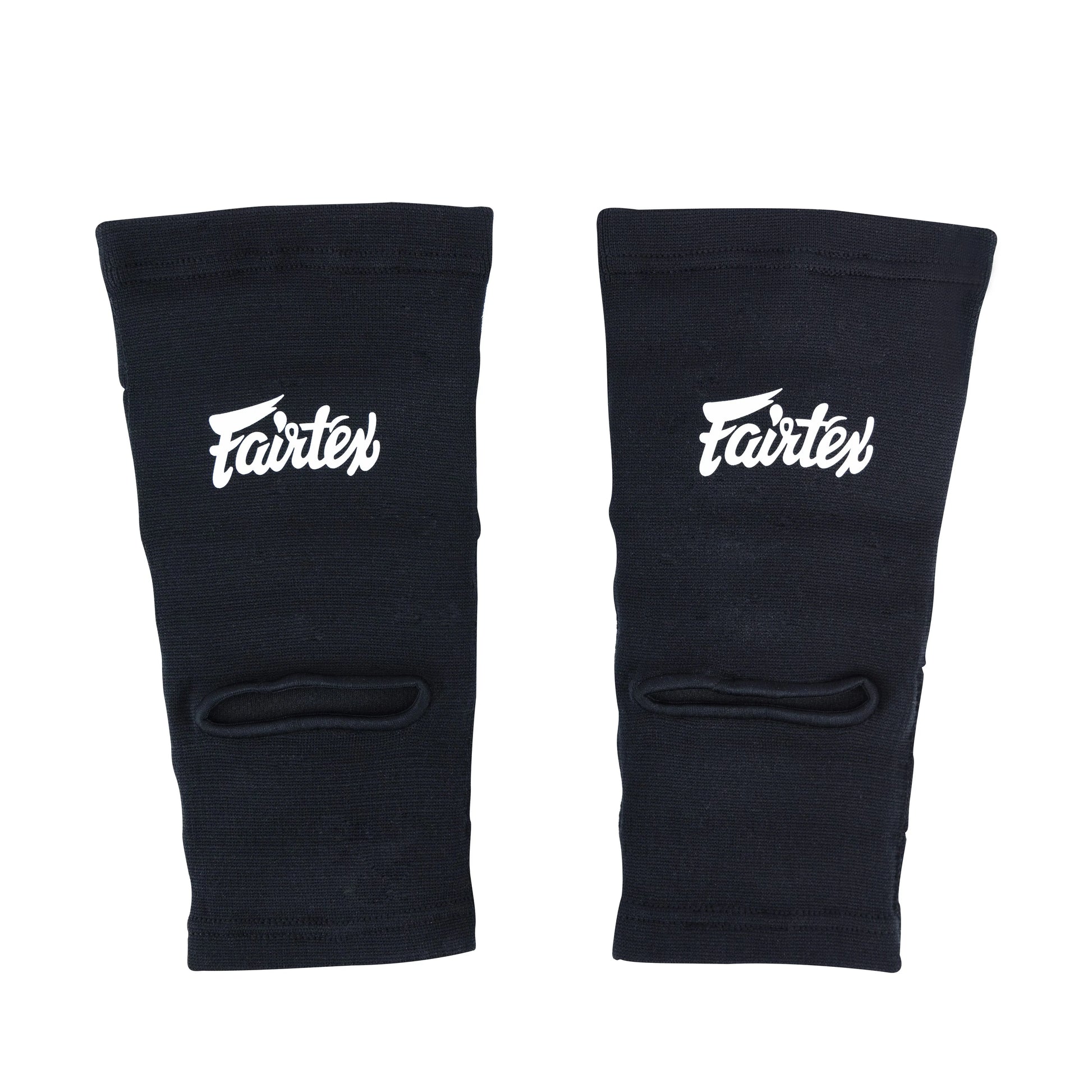 - Made from high-quality, breathable fabric, they offer a snug yet comfortable fit that stays in place during your workouts. The minimalist black design, with the iconic Fairtex logo in white, ensures a sleek look that complements any training gear. Ideal for Muay Thai, Kickboxing, and MMA, these ankle guards are a must-have for athletes seeking improved protection and performance without sacrificing mobility.